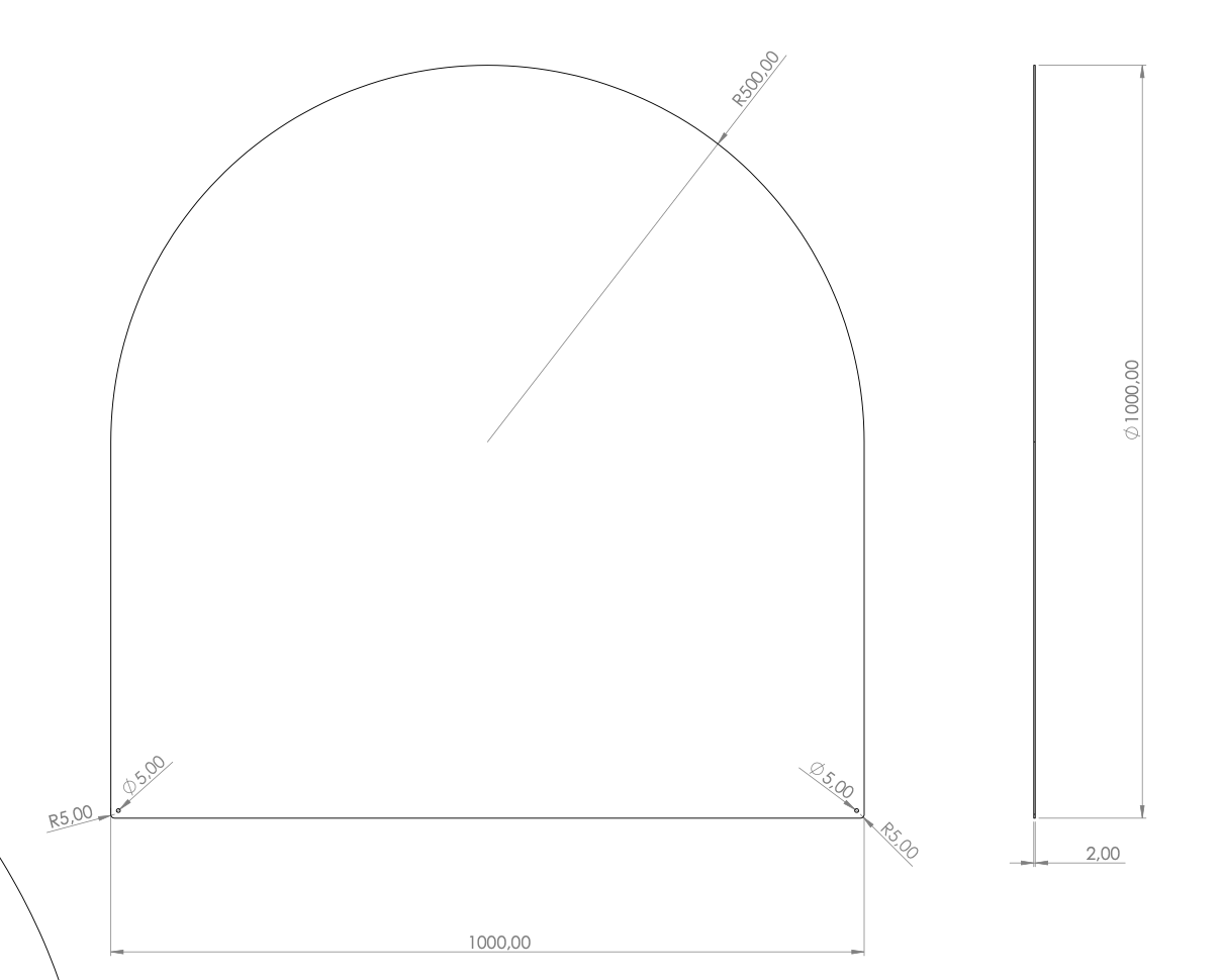 Plech pod kamna 1000x1000x2 mm - půloblouk