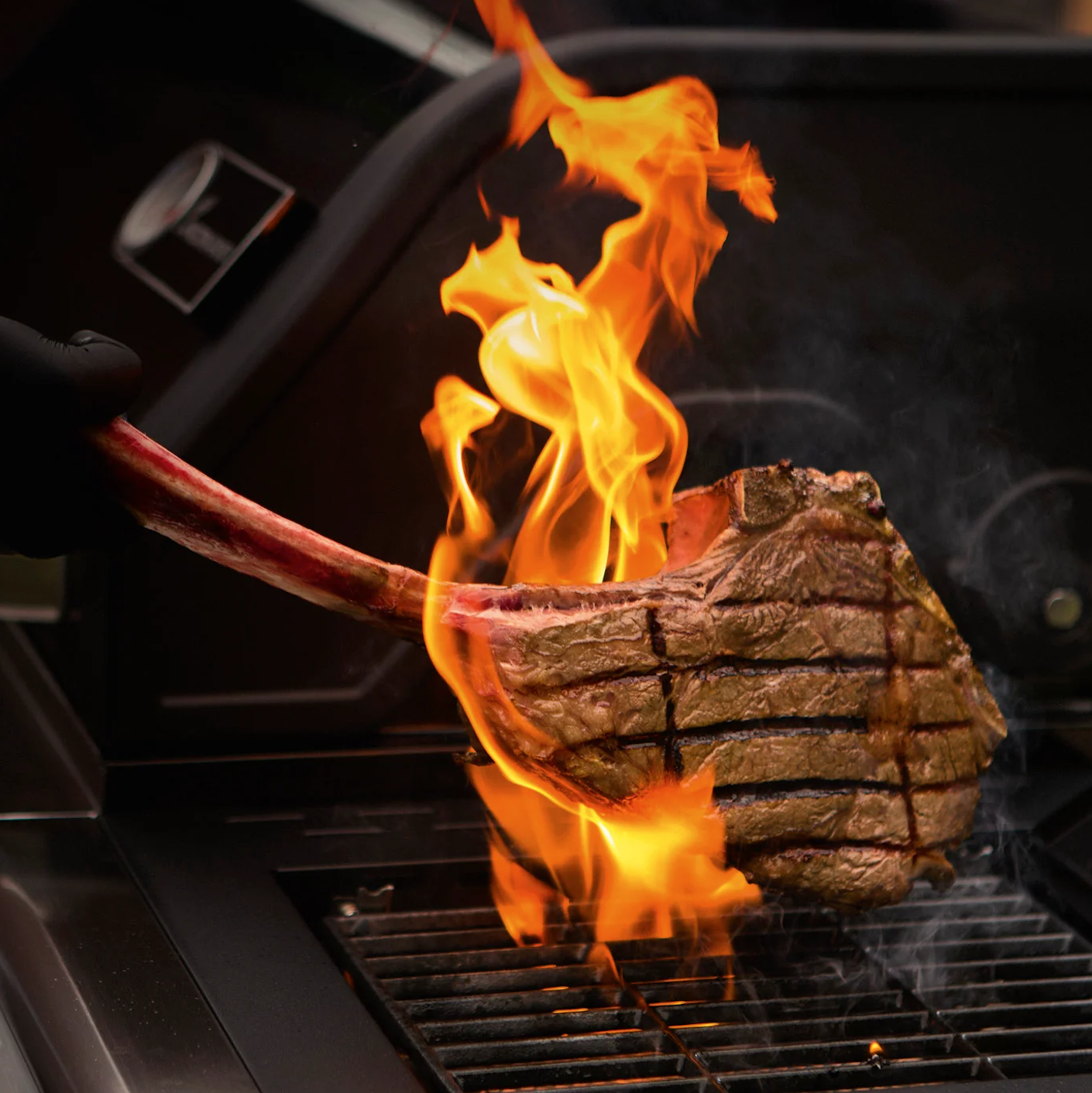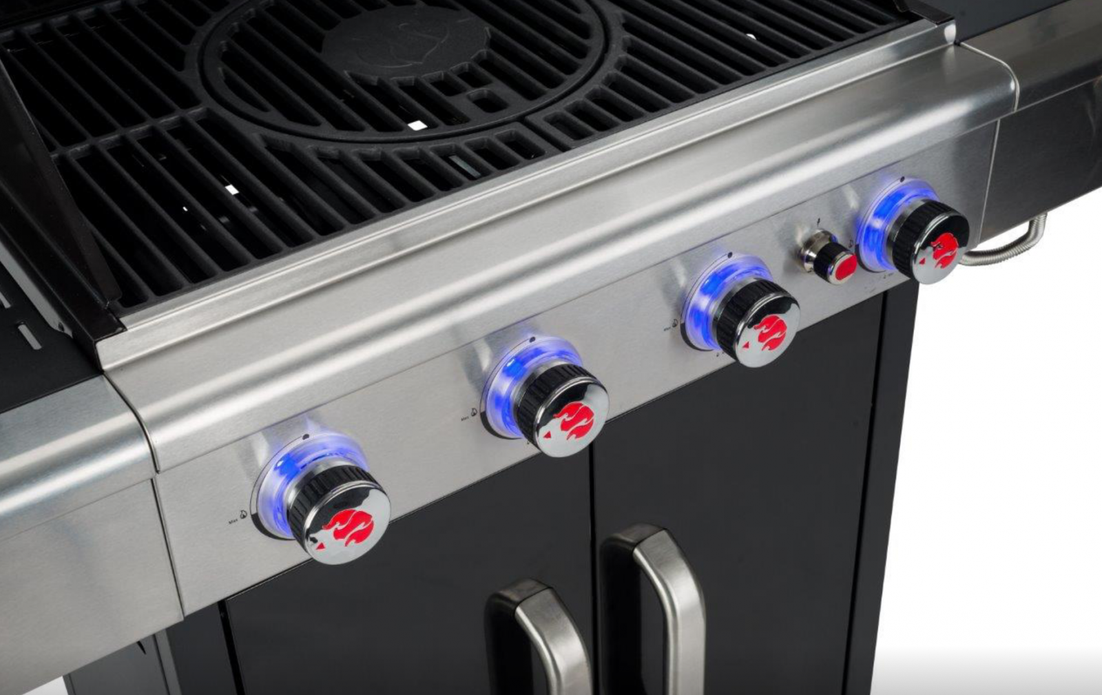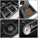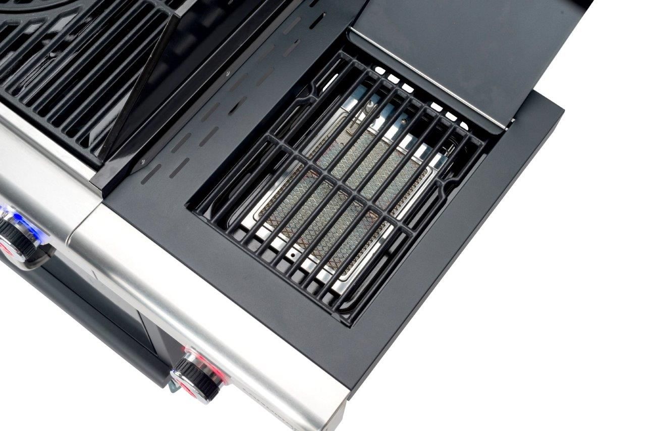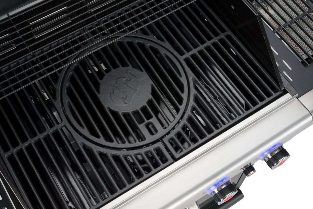 - maxX zóna (boční infračervený hořák) se smaltovaným litinovým roštem pro vaření a grilování steaků díky teplotám až 800*C (3,5 kW)