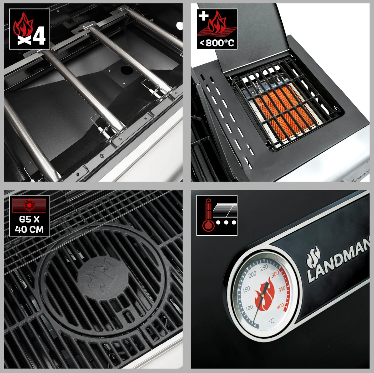 Plynový gril Landmann TRITON maxX 4.1 PTS spojuje stylový design s vynikající funkčnost, což zaručuje dlouhodobé využití tohoto produktu.