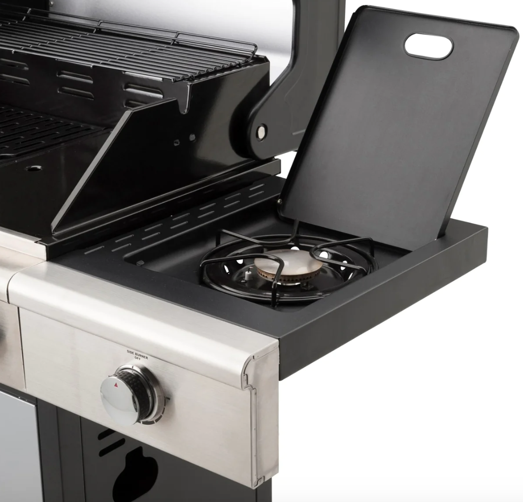 - Celkový výkon 15,0 kW zahrnuje 4 nezávislé hlavní hořáky z nerezové oceli (každý 3,0 kW) + boční hořák na vaření (3,0 kW).