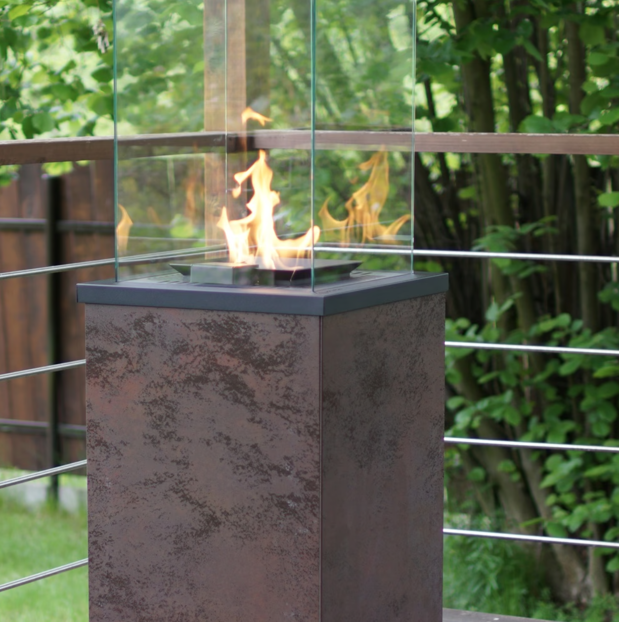 PATIO MINI využívá kapalný plyn z tlakové lahve skryté v pouzdře. Plameny jsou uzavřeny za skleněnými panely, což poskytuje ochranu před přímým kontaktem s ohněm. Tvrzené sklo a ocelová spodní část zajišťují odolnost a snadnou údržbu. Horní konstrukce topidla chrání plameny proti větru a rovnoměrně rozděluje teplo na všech čtyřech stranách. Speciální ventil proti překlopení a pokročilý systém regulace plynu zajistí maximální bezpečnost při používání.