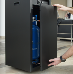 PATIO využívá kapalný plyn z tlakové lahve skryté v pouzdře. Plameny jsou uzavřeny za skleněnými panely, což poskytuje ochranu před přímým kontaktem s ohněm. Tvrzené sklo a ocelová spodní část zajišťují odolnost a snadnou údržbu. Horní konstrukce topidla chrání plameny proti větru a rovnoměrně rozděluje teplo na všech čtyřech stranách. Speciální ventil proti překlopení a pokročilý systém regulace plynu zajistí maximální bezpečnost při používání.