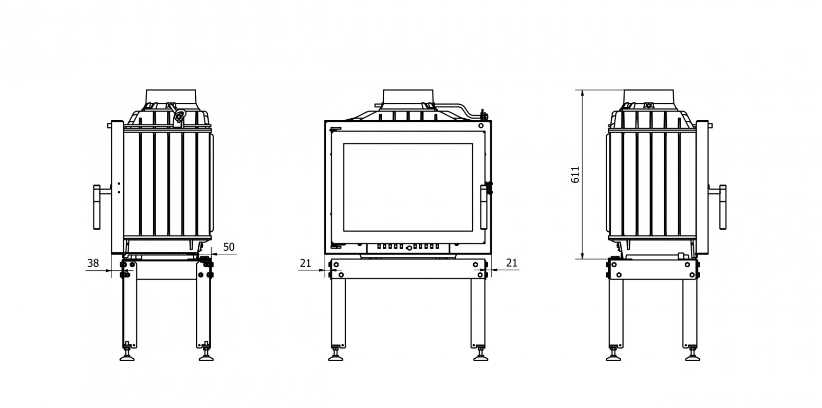 Nastavitelné nohy, které lze nastavit až o 5 cm, umožňují bezpečné umístění krbu i na výrazně nerovném povrchu.