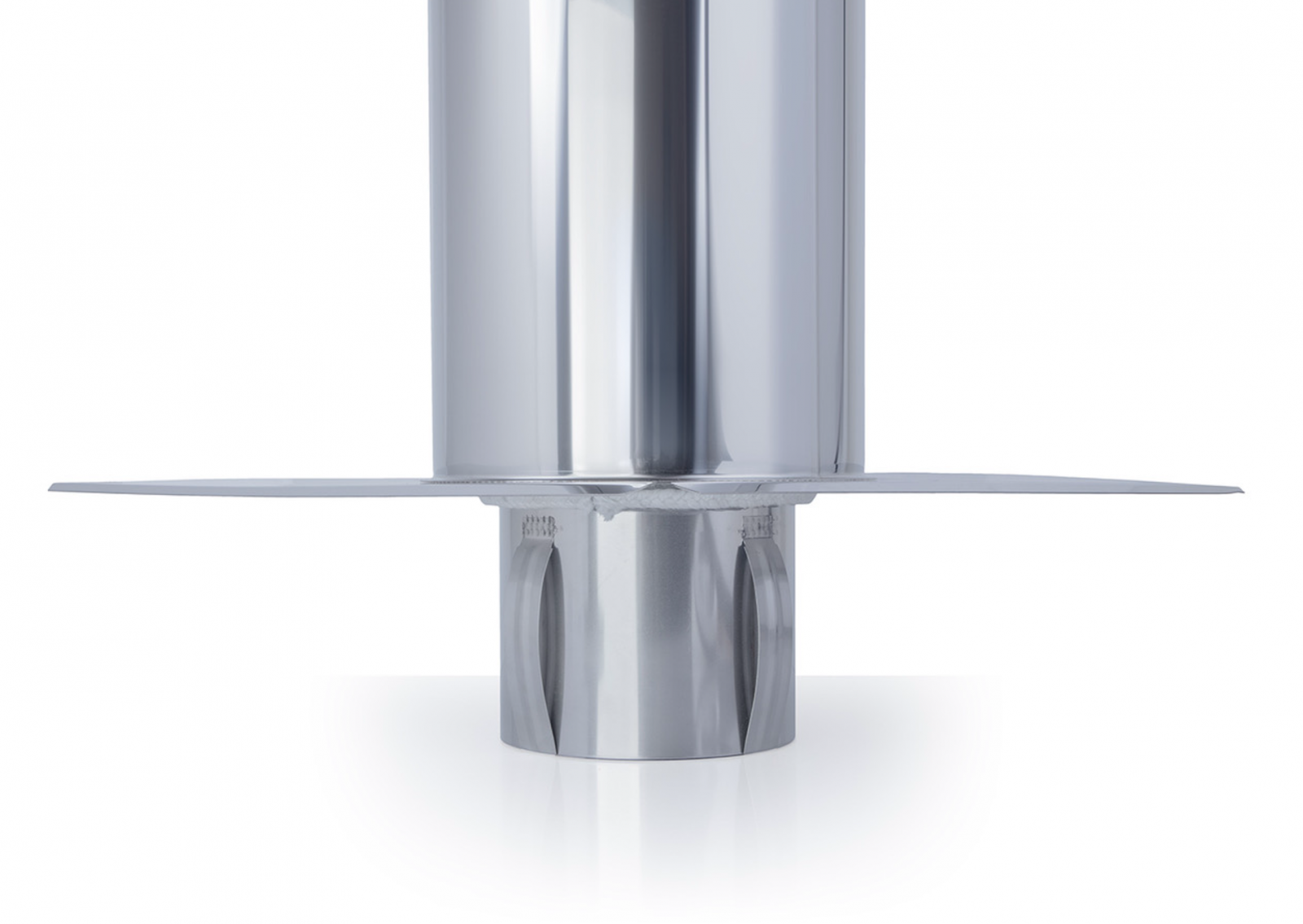 Třísložkové izolované prodloužení stávajících komínu o 0,6m v provedení nerezová vnitřní vložka - izolace a nerezový vnější plášť. Speciální izolace o síle 30mm. Síla vnitřní stěny 0,8mm, třída ušlechtilé nerez oceli 1.4401, vnější 0,5mm (1.4301 lesk). Jedná se o rychlé a elegantní řešení na nedostatečný tah komínu.