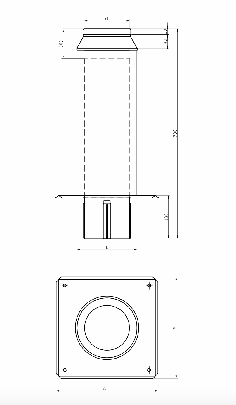 Třísložkové izolované prodloužení stávajících komínu o 0,6m v provedení nerezová vnitřní vložka - izolace a nerezový vnější plášť. Speciální izolace o síle 30mm. Síla vnitřní stěny 0,8mm, třída ušlechtilé nerez oceli 1.4401, vnější 0,5mm (1.4301 lesk). Jedná se o rychlé a elegantní řešení na nedostatečný tah komínu.
