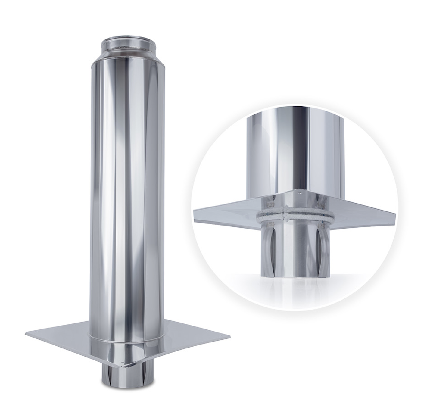 Třísložkové izolované prodloužení stávajících komínu o 0,87m v provedení nerezová vnitřní vložka - izolace a nerezový vnější plášť. Speciální izolace o síle 30mm. Síla vnitřní stěny 0,8mm, třída ušlechtilé nerez oceli 1.4521, vnější 0,5mm (1.4301 lesk). Jedná se o rychlé a elegantní řešení na nedostatečný tah komínu.