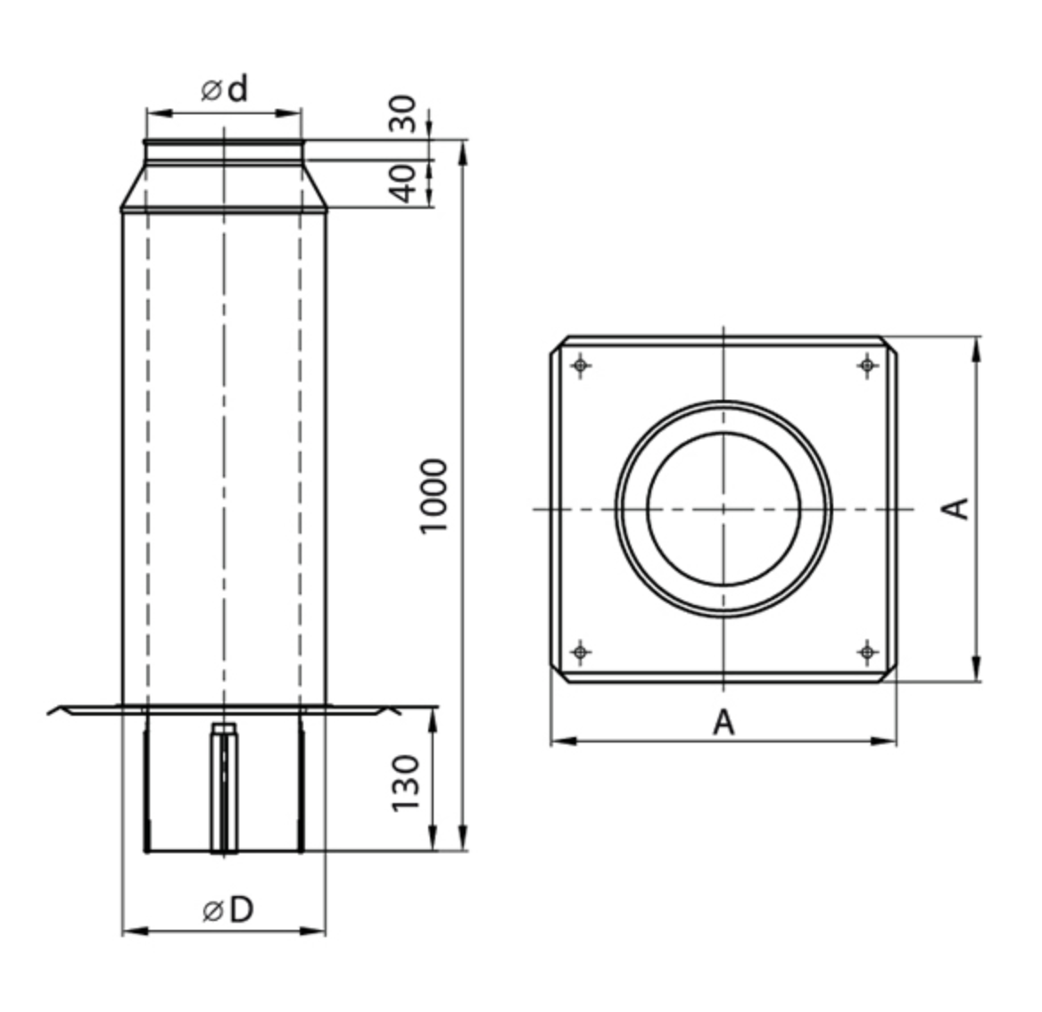 Třísložkové izolované prodloužení stávajících komínu o 0,87m v provedení nerezová vnitřní vložka - izolace a nerezový vnější plášť. Speciální izolace o síle 30mm. Síla vnitřní stěny 0,8mm, třída ušlechtilé nerez oceli 1.4521, vnější 0,5mm (1.4301) - povrchová úprava RAL 9005.