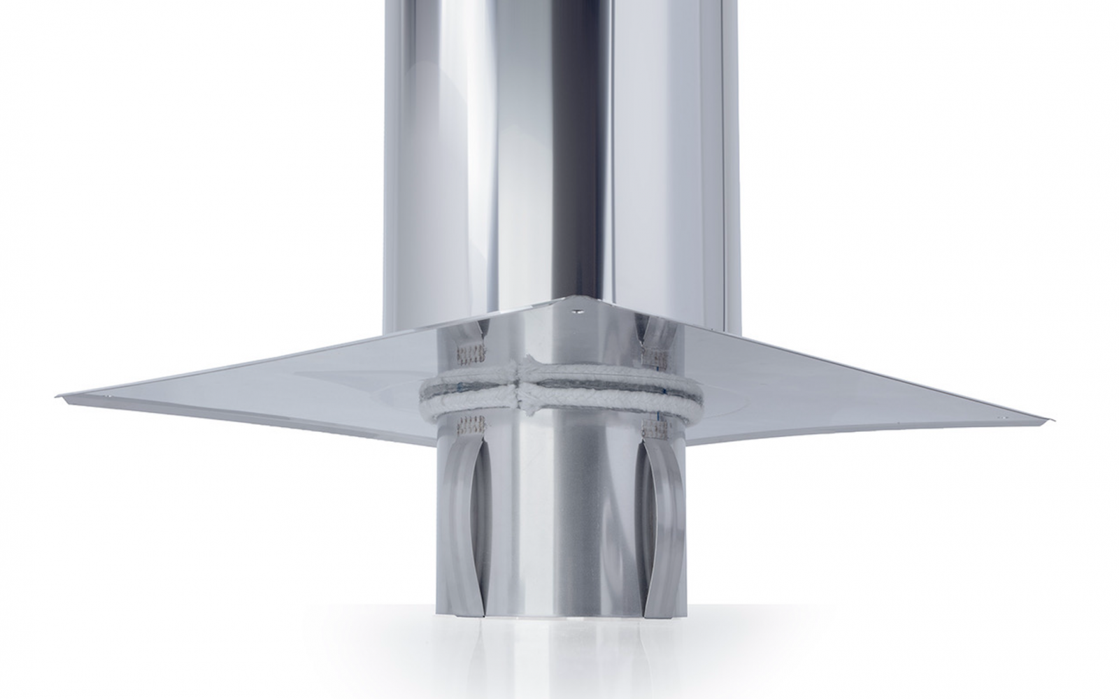 Třísložkové izolované prodloužení stávajících komínu o 0,87m v provedení nerezová vnitřní vložka - izolace a nerezový vnější plášť. Speciální izolace o síle 30mm. Síla vnitřní stěny 0,8mm, třída ušlechtilé nerez oceli 1.4521, vnější 0,5mm (1.4301 lesk). Jedná se o rychlé a elegantní řešení na nedostatečný tah komínu.