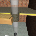 Při seřezávání výšky prostupu podle rozměrů okolní konstrukce je potřeba postupovat opatrně. Tato operace je poměrně choulostivá a hrozí riziko popraskání pěnoskla. Celistvost prostupu nesmí být při úpravách porušena! Zároveň musí být dodržena bezpečná vzdálenost komína od hořlavých konstrukcí v souladu s návodem na zabudování nerezových komínů do stavby.