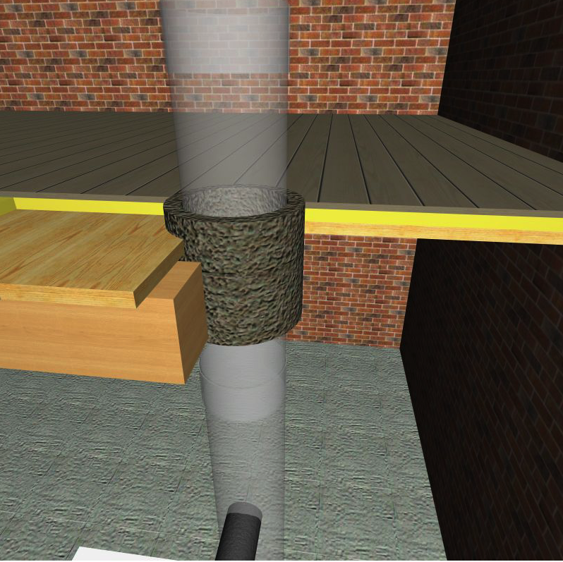 Při seřezávání výšky prostupu podle rozměrů okolní konstrukce je potřeba postupovat opatrně. Tato operace je poměrně choulostivá a hrozí riziko popraskání pěnoskla. Celistvost prostupu nesmí být při úpravách porušena! Zároveň musí být dodržena bezpečná vzdálenost komína od hořlavých konstrukcí v souladu s návodem na zabudování nerezových komínů do stavby.