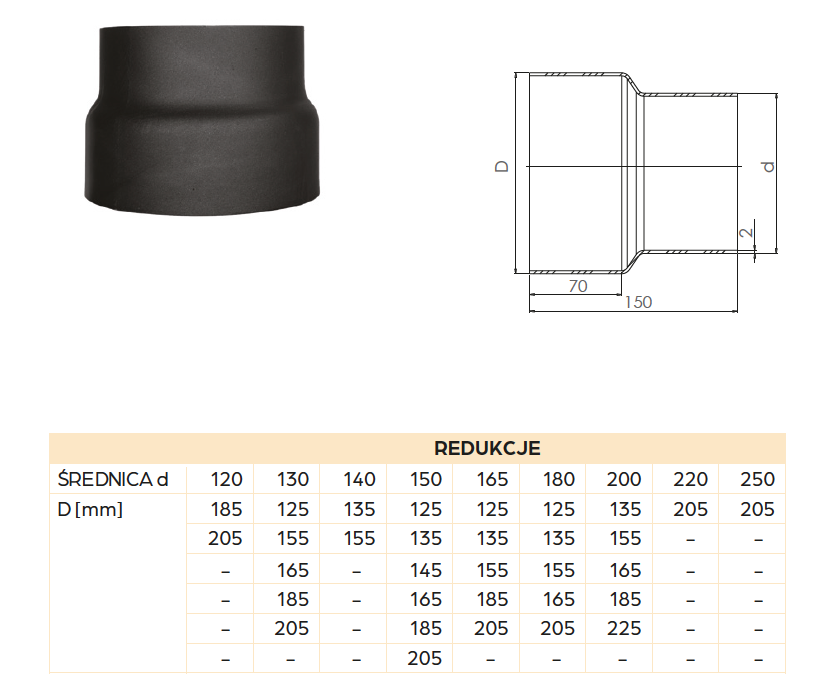 Redukce 180/150mm, tl. mat. 2mm (kouřovod/nerez) STAHL