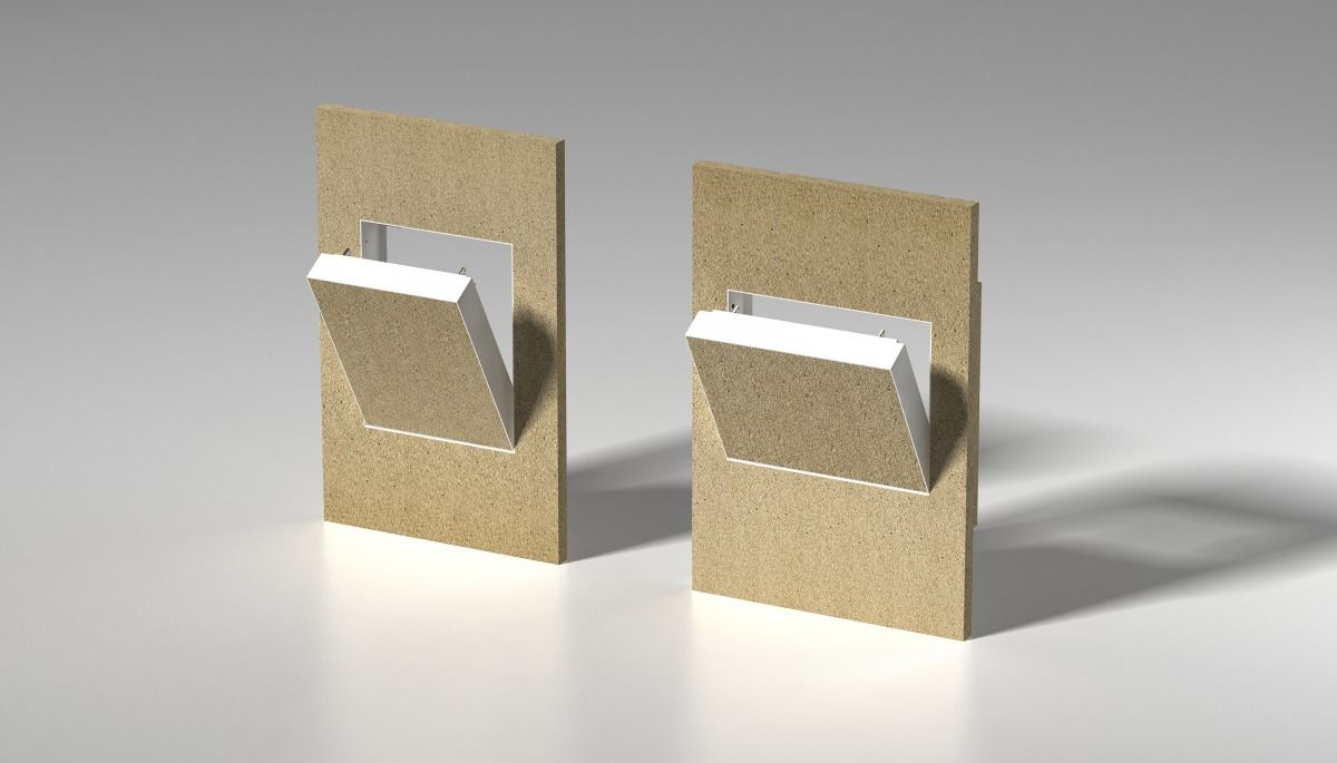 Samostatná dvířka s izolační deskou se vkládají opřením do spodní čísti rámu a zacvaknutím do zámečku v horní části rámu.