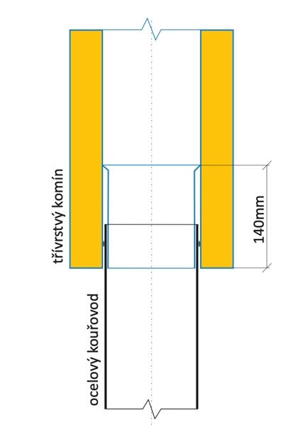 slouží k pohodlnému dopojení svislého kouřovodu a spotřebiče umístěného pod ním. Lze použít i v případě klasické konstrukce komínu kdy je spotřebič blízko t-kusu. Disponuje dvojitým hrdlem výšky 140mm, které umožňuje zasunutí kouřovodu (široku i zúženou stranou), lze tedy dopojit po kouři i po vodě (dle typu instalace).