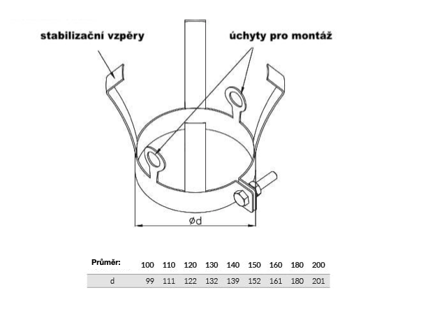 slouží k vystředění komínové vložky v komínovém průduchu. Zároveň slouží jako montážní objímka pro spuštění první roury do komínu.