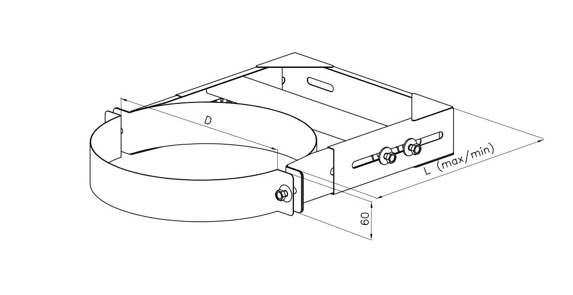 Slouží k uchycení komínového tělesa ke stěně budovy ve vzdálenosti 150 mm až 300 mm od pláště komínu, objímka je v tomto rozmezí stavitelná. Doporučujeme instalovat max. 2m od sebe. Stěnová objímka pasuje na izolované roury o vnějším průměru 350 mm.