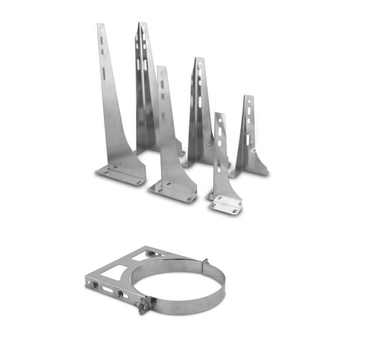 Stěnová objímka W4 (350 - 430mm) se skládá z jedné objímky na komín a dvou konzolek na stěnu.