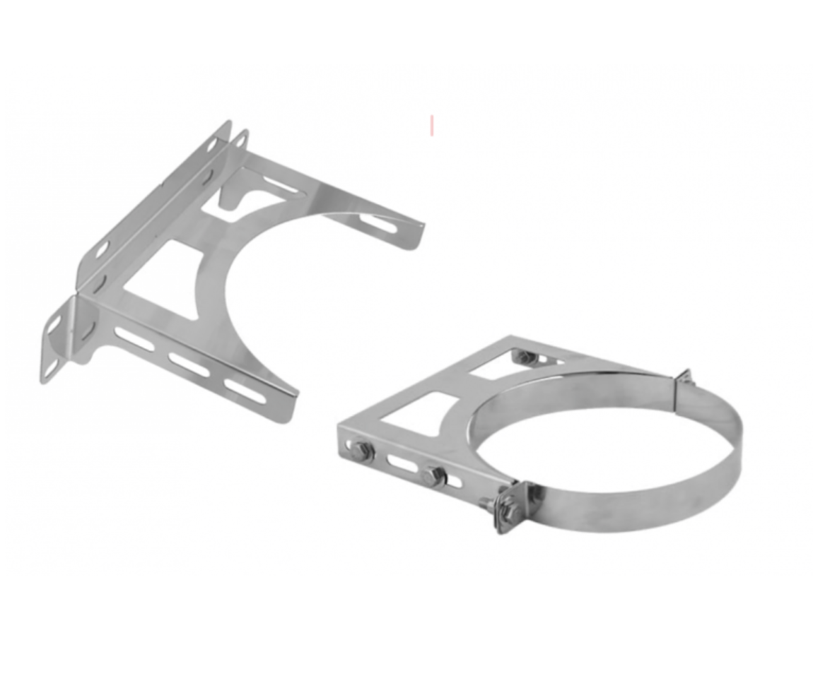 Stěnová objímka W1 (70 - 150mm) se skládá z jedné objímky na komín a jedné konzolky na stěnu.