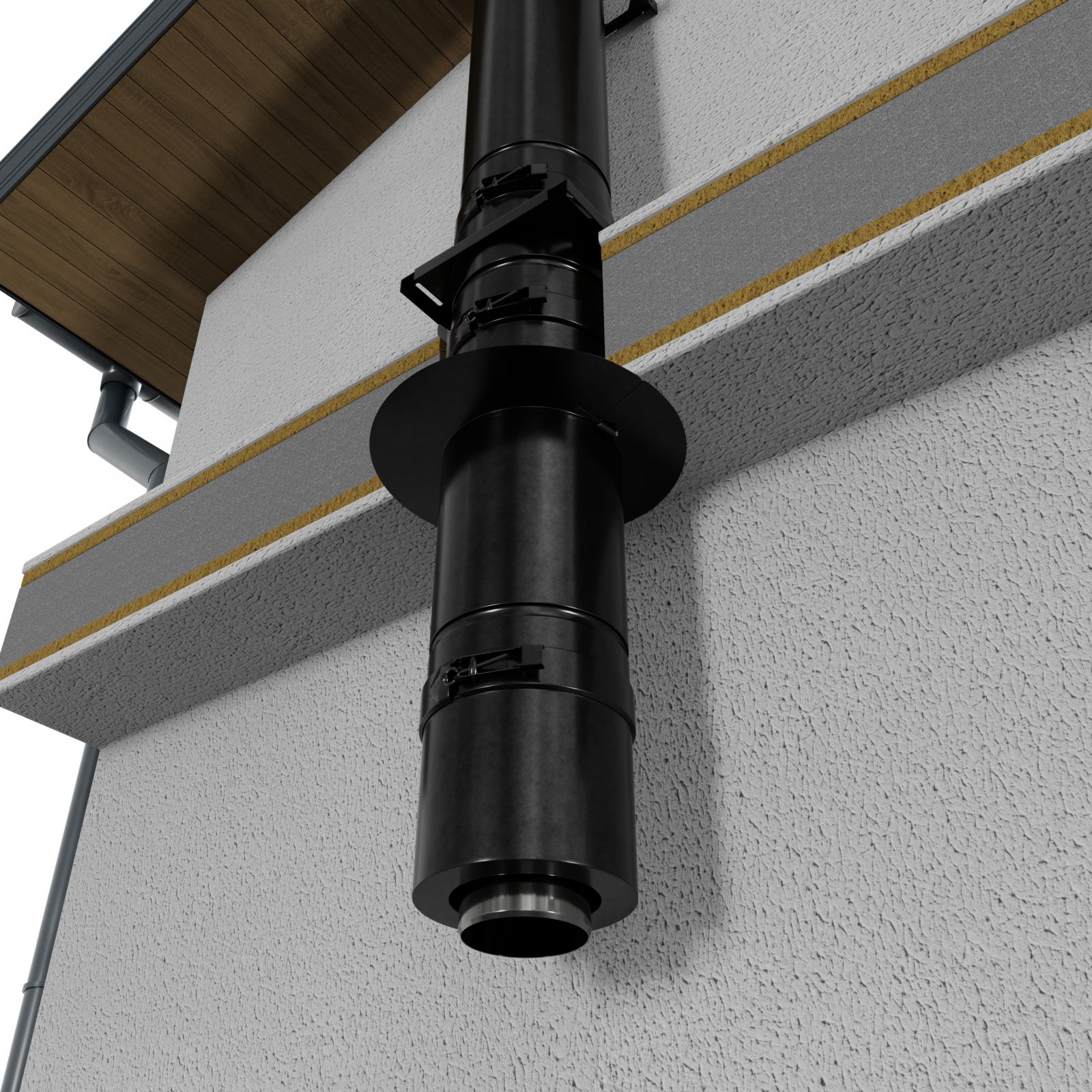 Komínová sestava má povrchovou úpravu černé barvy RAL 9005 matná. K setu nejsou dodávány spojovací objímky. Spoje je potřeba spojit nerezovými nýty.
