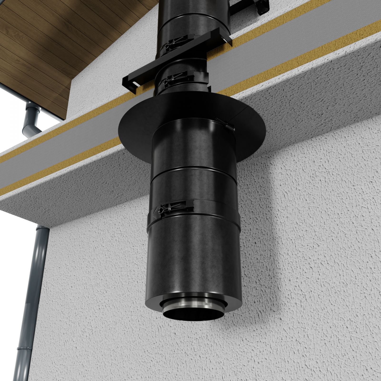 Komínovou sestavu doporučujeme doplnit o vhodný střešní přechod, případně i protipožární prostup jestliže komín prostupuje hořlavými konstrukcemi. Sestava neobsahuje ocelový černý kouřovod - dopojení ke spotřebiči. V případě požadavku na jiný odstup komína od konstrukce, nebo jinou výšku Vám rádi připravíme nabídku na míru.