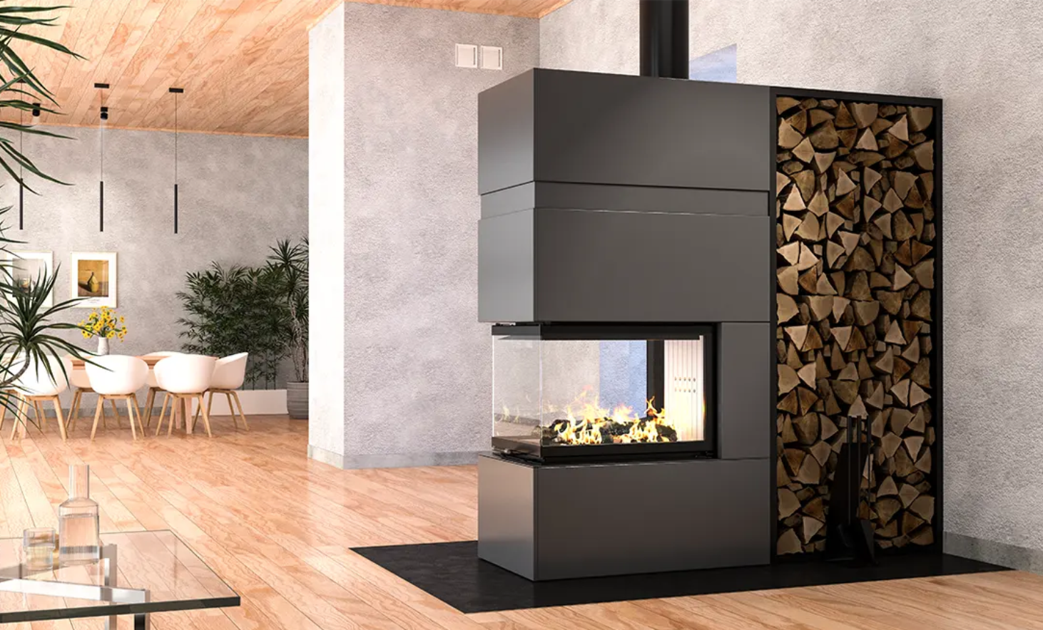 Poutavá třístranná vložka pro moderní design s maximální viditelností ohně.