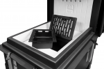 - Otevírání krbu pomocí nového gilotinového mechanismu zajišťujícího těsnost vložky, bezpečnost proti otevření dětmi a s obslužným přístupem.
