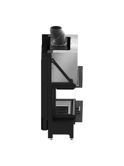 - Otevírání krbu pomocí nového gilotinového mechanismu zajišťujícího těsnost vložky, bezpečnost proti otevření dětmi a s obslužným přístupem.