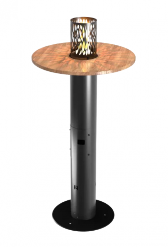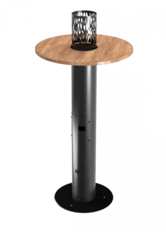 Nic jednoduššího! Zahřejte atmosféru, otočte atmosféru a vytvořte atraktivní prostor pro rozhovor zakoupením plynového zahradního topidla do restaurace, které zároveň slouží jako stůl - FUENTE I. Je to model, který jsme vytvořili pro všechny hoteliéry a restauratéry, aby mohli svým hostům zpříjemnit pobyt ve svých prostorách . A co víc, je to řešení, které můžete úspěšně napájet jak plynovou lahví, tak domácí plynovou instalací poháněnou propanem. Vytápění a osvětlení v jednom, tedy plynové topení FUENTE IPlynové terasové a zahradní topidlo FUENTE I je zjednodušeně řečeno elegantní, vysoký barový stůl s kulatou dřevěnou deskou, uprostřed kterého je topeniště. Pro bezpečnost je pokryta prolamovaným vzorem. Příjemné teplo, které se kolem topidla vytváří, je cítit přímo v jeho okolí, díky čemuž se u něj může zahřát i několik lidí. Usnadňuje to i forma štíhlého konferenčního stolku s prostornou deskou, na kterou snadno položíme svačiny, nápoje